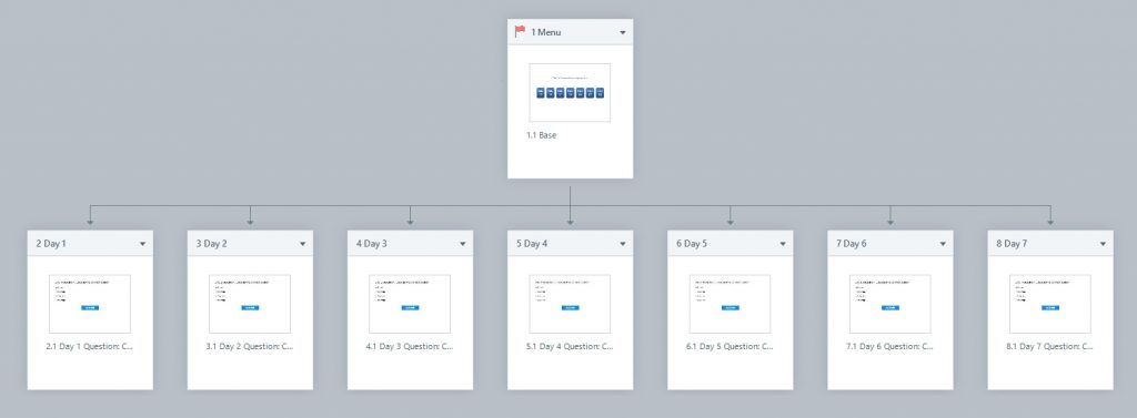 In the demo you’ll see seven buttons. One button for each date in the range 12th-18th Feb 2019. Each button links to a multiple-choice question slide that can’t be viewed until the date on the button has been reached.